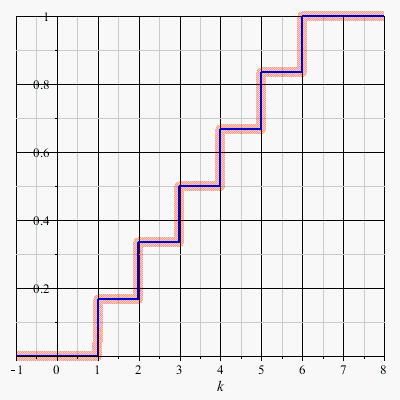 plot(CDF(X, k), k=-1..8, color=red, transparency=0.7, thickness=10),