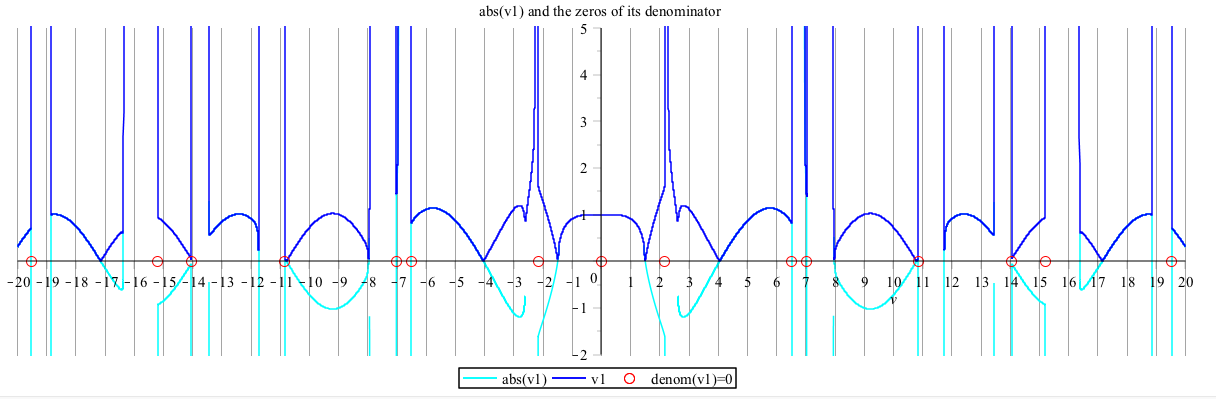 Unless f(v) vanishes at these points and that the limits f(v)/g(v) exist, this means there are 17 subranges within -20..20 where f(v)/g(v) is continuous, and so, potentially 34 points where v1= -1 or -1 = v1= 1.