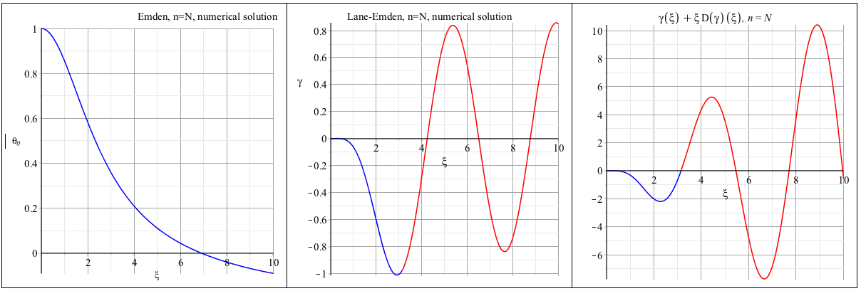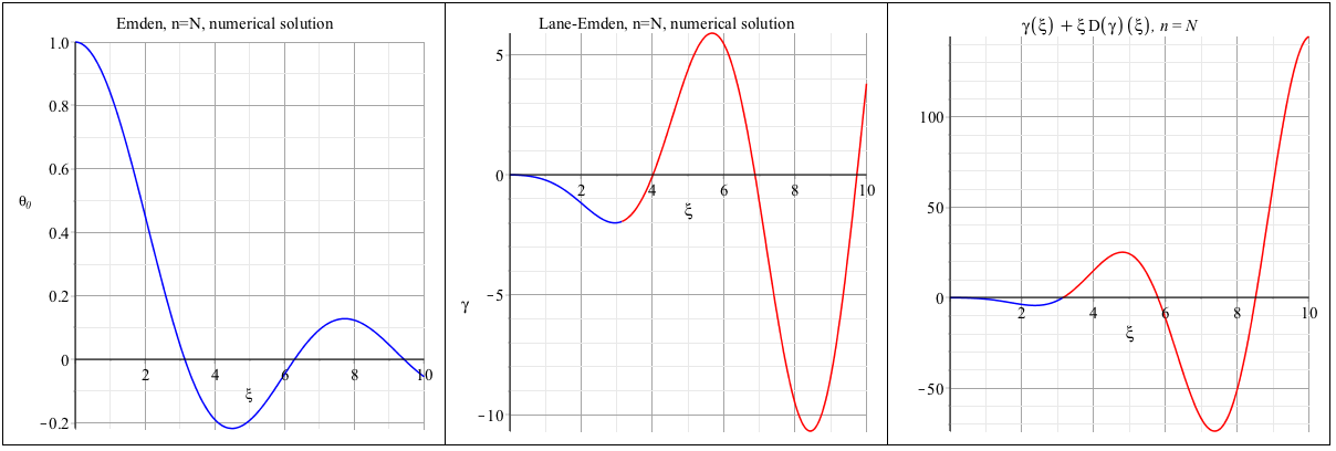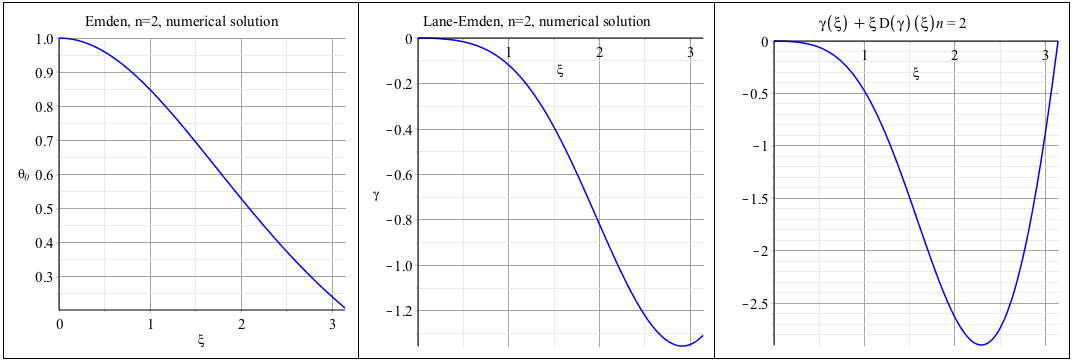 • to relax the initial conditions by writting gamma(epsilon)=eta and D(gamma)(epsilon)=tau (the numerical solution of the Lane-Emden equation then is a function of xi parameterized by eta and tau)