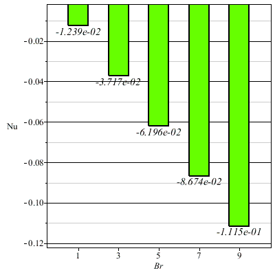 UnivariateBarGraph(Br, [seq(1..9, 2)], [Q = .4290, lambda = -0.388e-1, k = .3, x = 0, beta = .2], "Chartreuse")