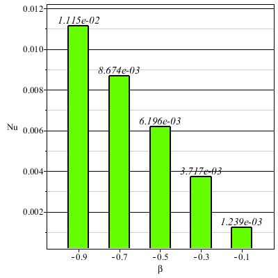UnivariateBarGraph(beta, [seq(-0.9..-0.1, 0.2)], [Q = .4290, lambda = -0.388e-1, k = .3, x = 0, Br = .1], "Chartreuse")
