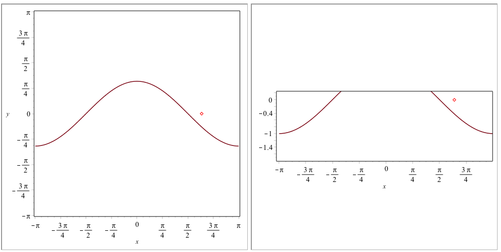 CURVES(Vector(4, {(1) = ` 200 x 2 `*Matrix, (2) = `Data Type: `*float[8], (3) = `Storage: `*rectangular, (4) = `Order: `*Fortran_order}), COLOUR(RGB, .47058824, 0., 0.54901961e-1, _ATTRIBUTE("source" = "mathdefault")), STYLE(LINE)), POINTS(Matrix(1, 2, {(1, 1) = 2., (1, 2) = 0.}), COLOUR(RGB, 1.00000000, 0., 0.)), SCALING(CONSTRAINED), AXESSTYLE(BOX), AXESLABELS(x, ""), AXESTICKS(_PITICKS, DEFAULT, _ATTRIBUTE("source" = "mathdefault")), VIEW(-3.141592647 .. 3.141592650, -1. .. .999896842142230957)