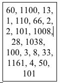 L := [60, 1100, 13, 1, 110, 66, 2, 2, 101, 1008, 28, 1038, 100, 3, 8, 33, 1161, 4, 50, 101];