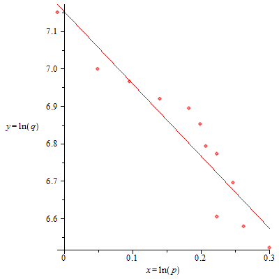 plot2 := plot( yfit, xfit = ln(min(pdata)) .. ln(max(pdata)) ):