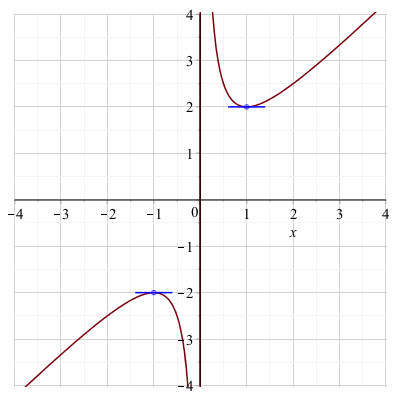 plot((1/2)*~[fneg, fpos](t), t=-1..1, color=[red, blue]),