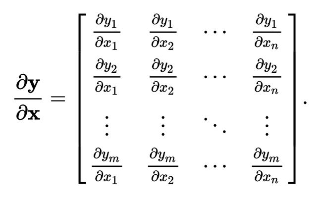 We know the derivative of Matrix Y wrt. matrix X as the following : (Jacobian Matrix)